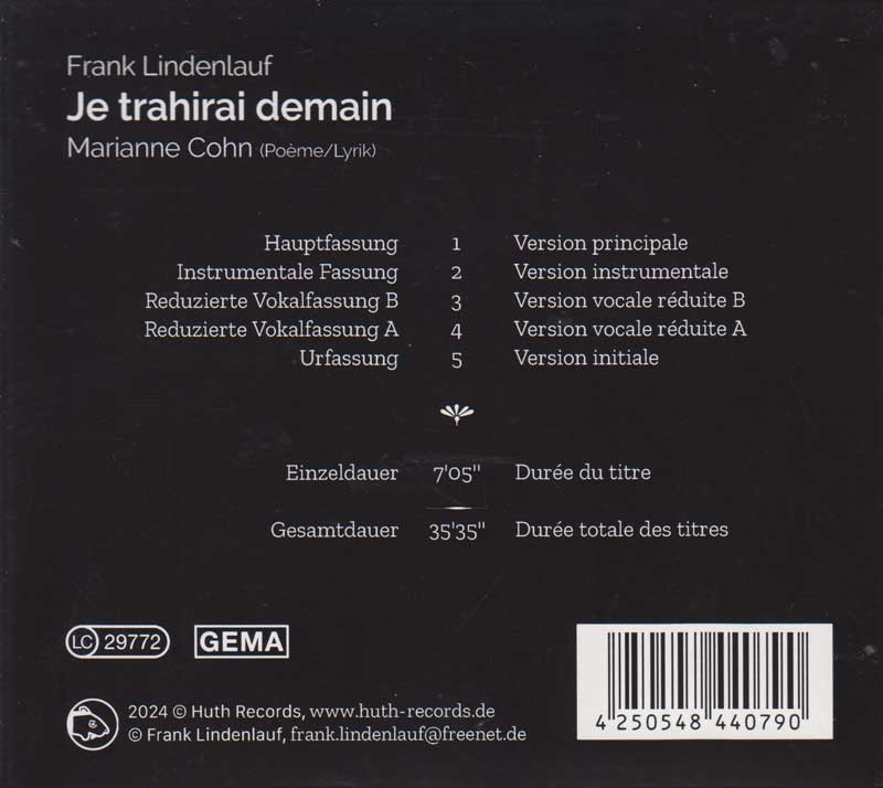 Alle Stücke komponiert, arrangiert and produziert von Frank Lindenlauf